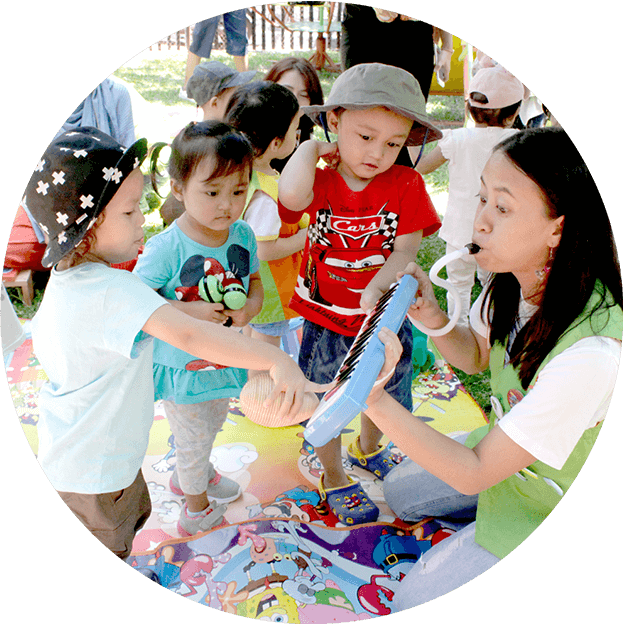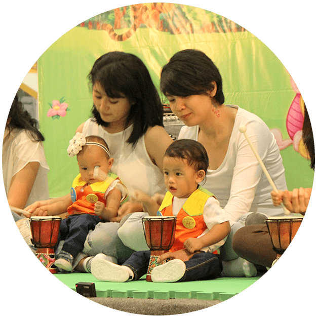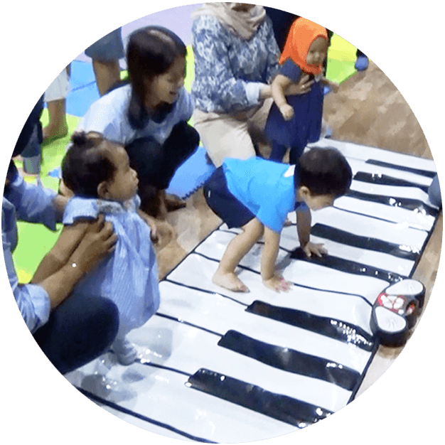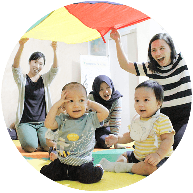 Aktivitas pembelajaran musik di kelas Jonim Musik dikemas dalam kegiatan serta permainan menyenangkan yang mengacu pada pendekatan teori-metode pengajaran musik yang sesuai untuk bayi-anak